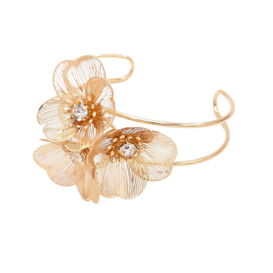 Golden Crystal Flower Cuff | Luxury Resort Bangle Jewelry