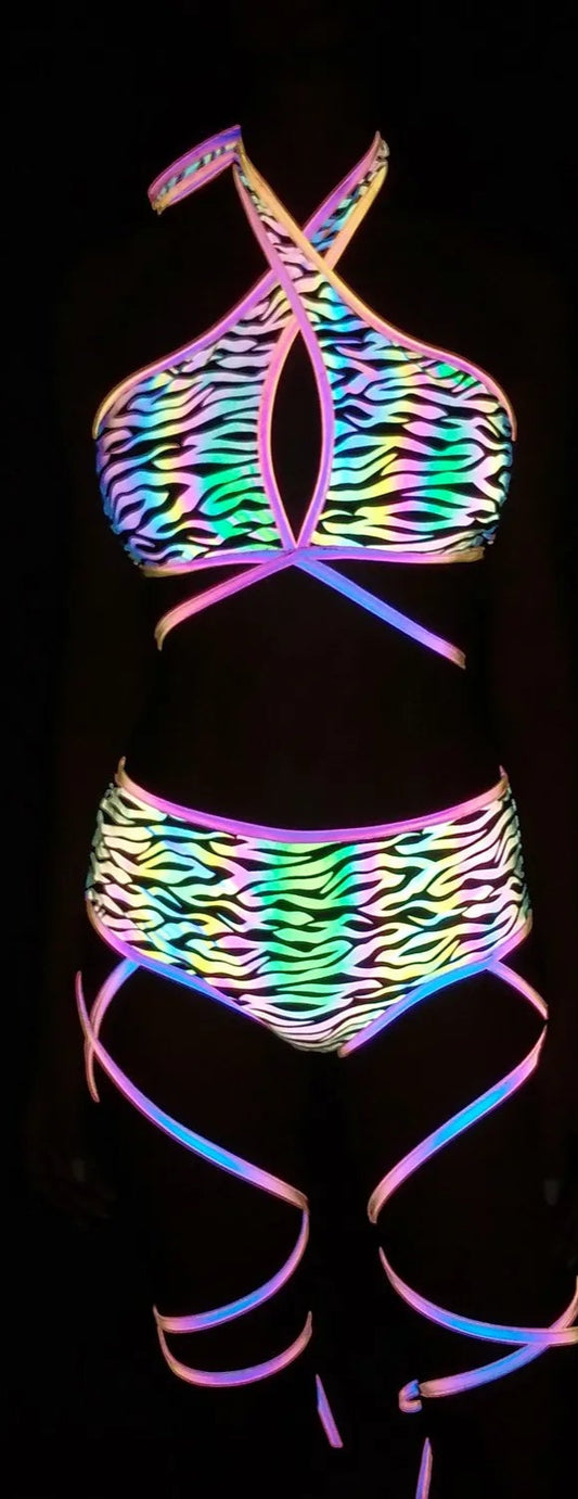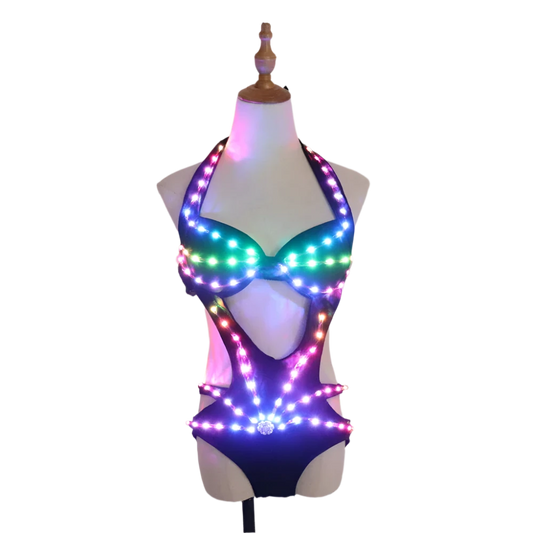Light up the night with naughty neon resort attire! Electric bodysuits, glow outfits & vibrant pieces perfect for neon theme nights. Pure electric energy!