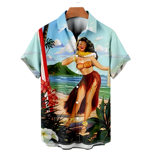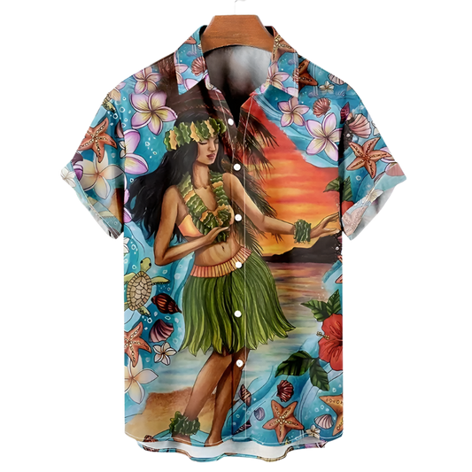 Men's Hawaiian Botanical Flower Print Shirt