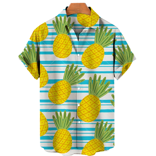 Men's Striped Button Short Sleeve Hawaiian Shirt