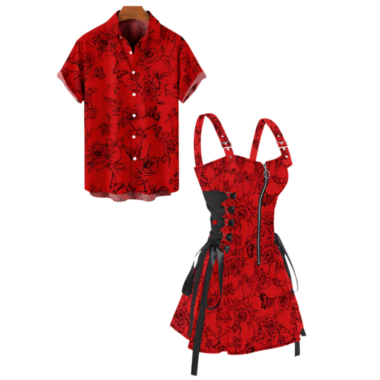 Couples Rose Flower Butterfly Print Set