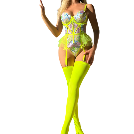 Neon Glow Mesh Lingerie Set