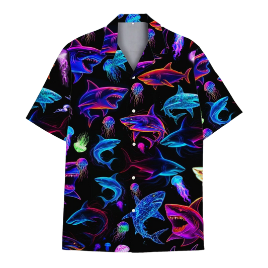 Neon Shark Print Hawaiian Resort Shirt