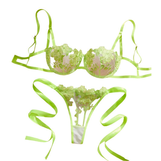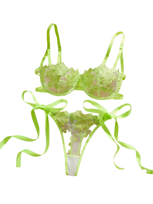 Sexy Neon Floral Embroidered Bra Set