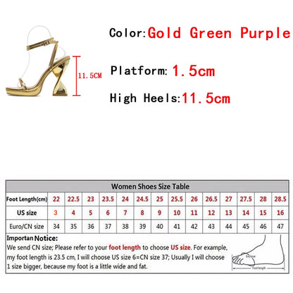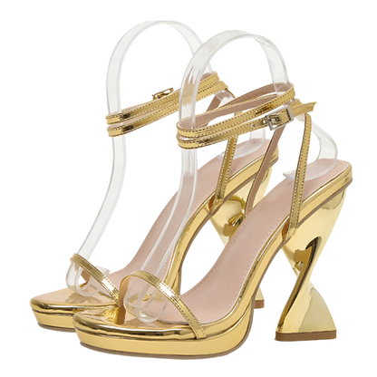 Unique strange high heels waterproof platform sandals with chunky design. Perfect summer party dress shoes for resort wear and theme night styling.