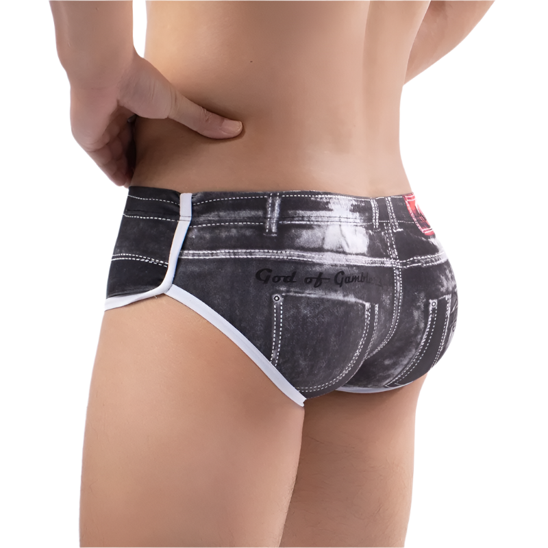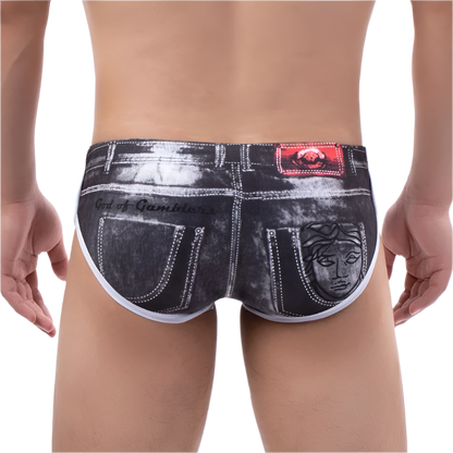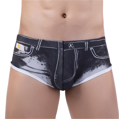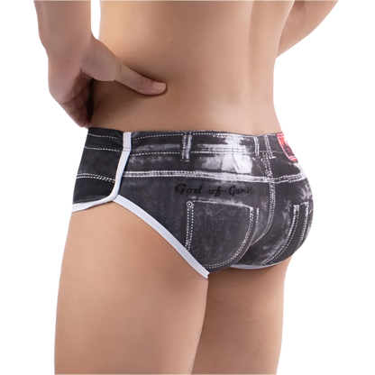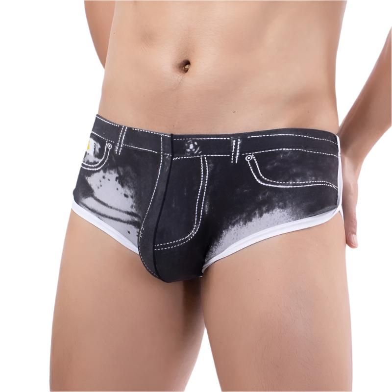 Embrace contemporary sophistication in our men's printed seamless bugle pouch briefs featuring faux denim bikini design and slip styling. Perfect for denim-themed resort days, contemporary occasions, and printed collections. Combines premium seamless craftsmanship with striking bugle pouch details for unforgettable comfort experiences.