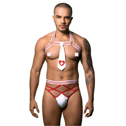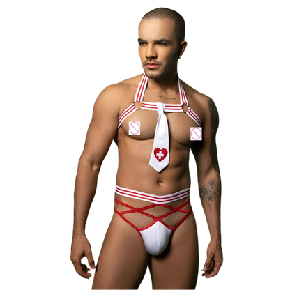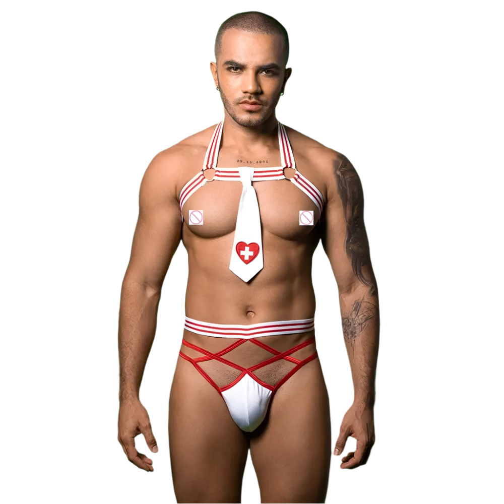 Play doctor in a sexy men’s roleplay underwear set. Bold, cheeky resort wear perfect for Temptation Cancún theme nights, Desire parties, and daring escapes.