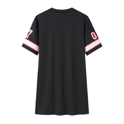 Score style points in our sophisticated cotton linen letter bodycon dress featuring casual loose fit, sexy short sleeve V-neck design, and basketball jersey styling. Perfect for summer resort occasions, casual streetwear events, and athletic-inspired fashion. Combines breathable cotton linen with striking letter details for effortless summer appeal.