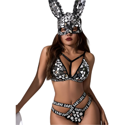 Hop into seduction with our sophisticated rabbit uniform 3-point lingerie set featuring plunge hollow-out design and bikini mask styling. Perfect for bunny-themed resort nights, role-play occasions, and playful intimate wear. Combines classic bunny motifs with luxury hollow-out craftsmanship.
