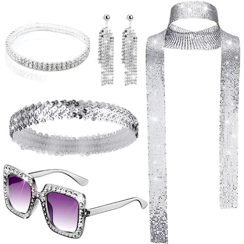 Get down and boogie in this 70s disco bling set featuring Studio 69 retro theme night styling and sparkling disco design. Perfect for bringing groovy glamour to resort Studio 69 nights and channeling your most dazzling disco goddess energy with retro bling appeal.
