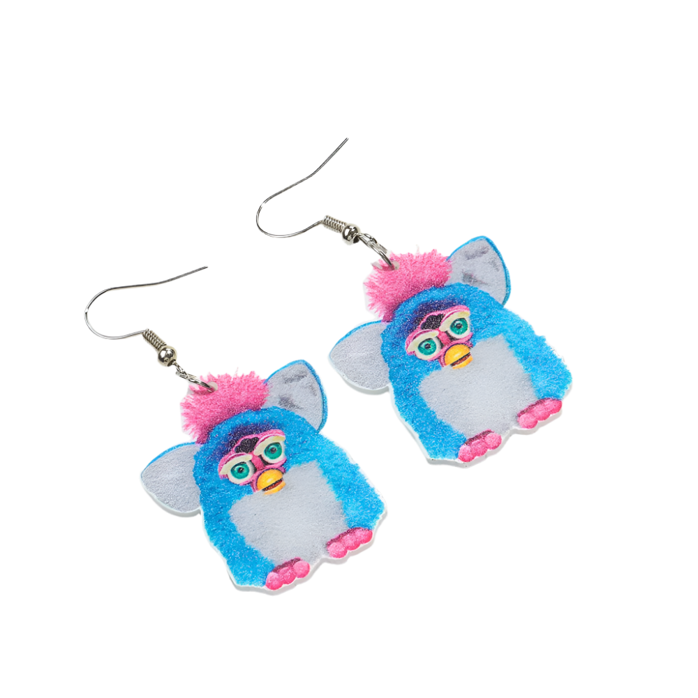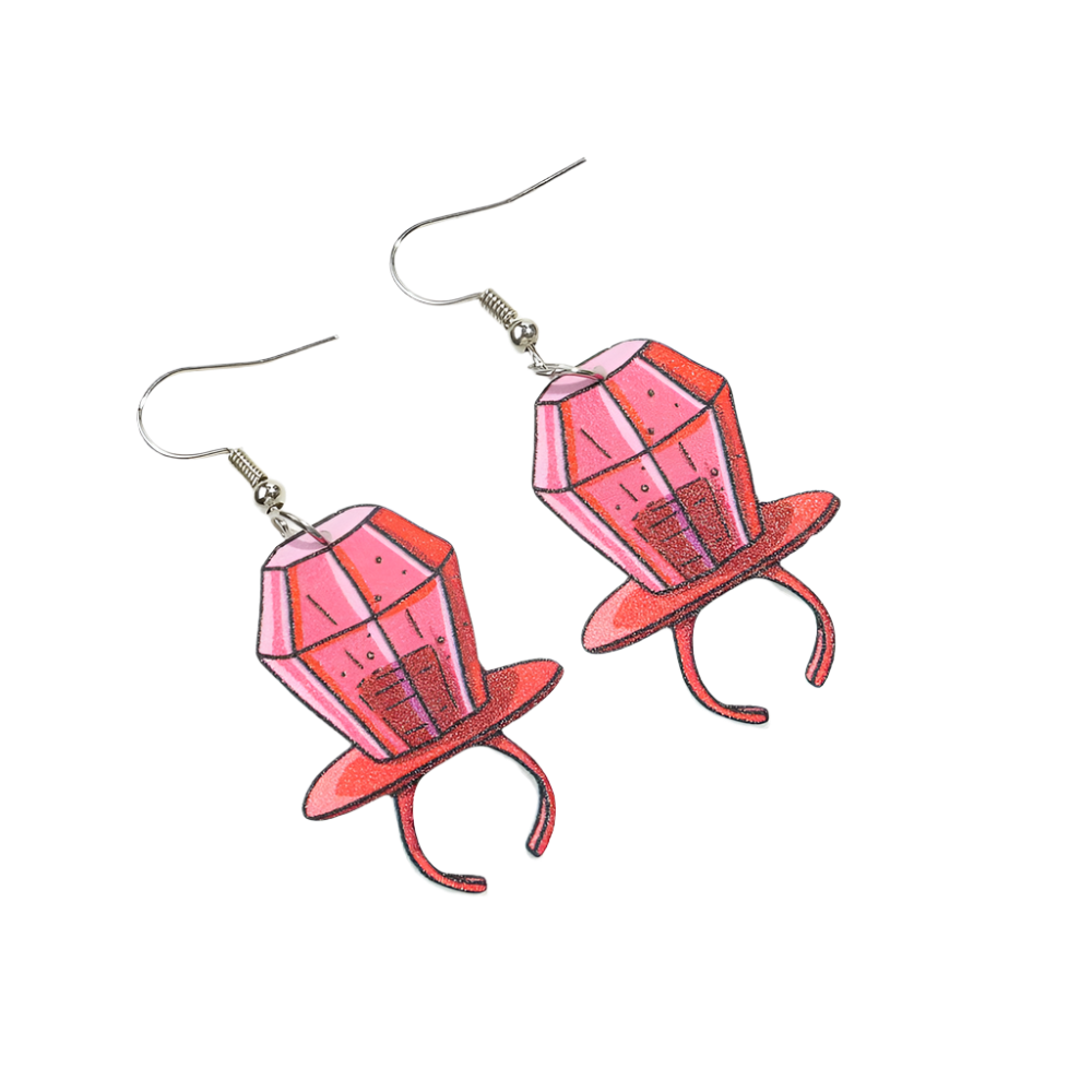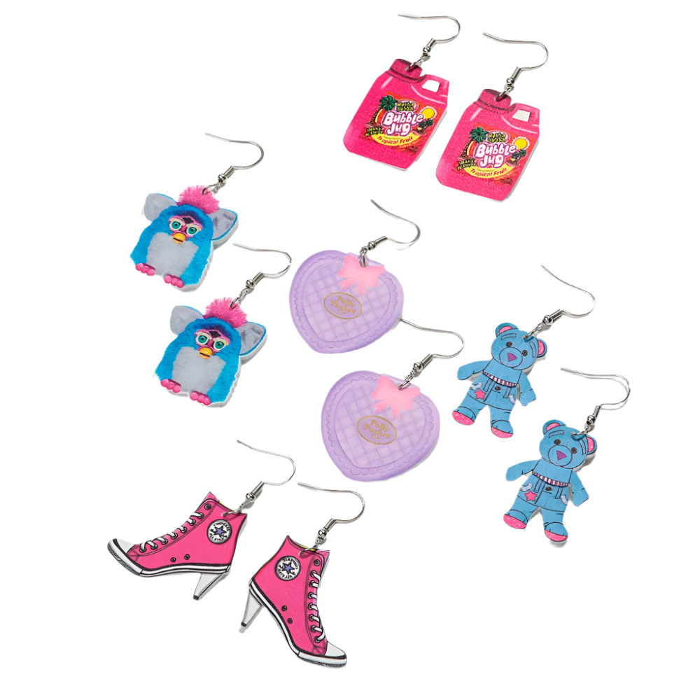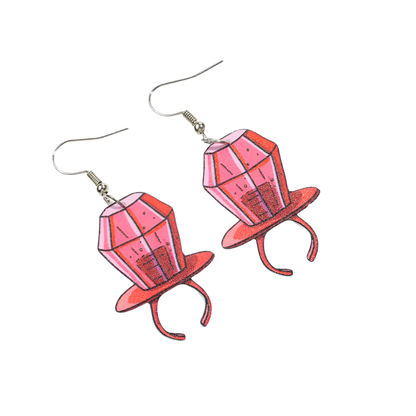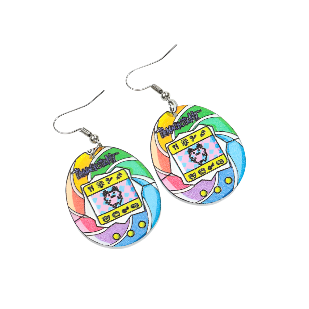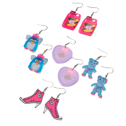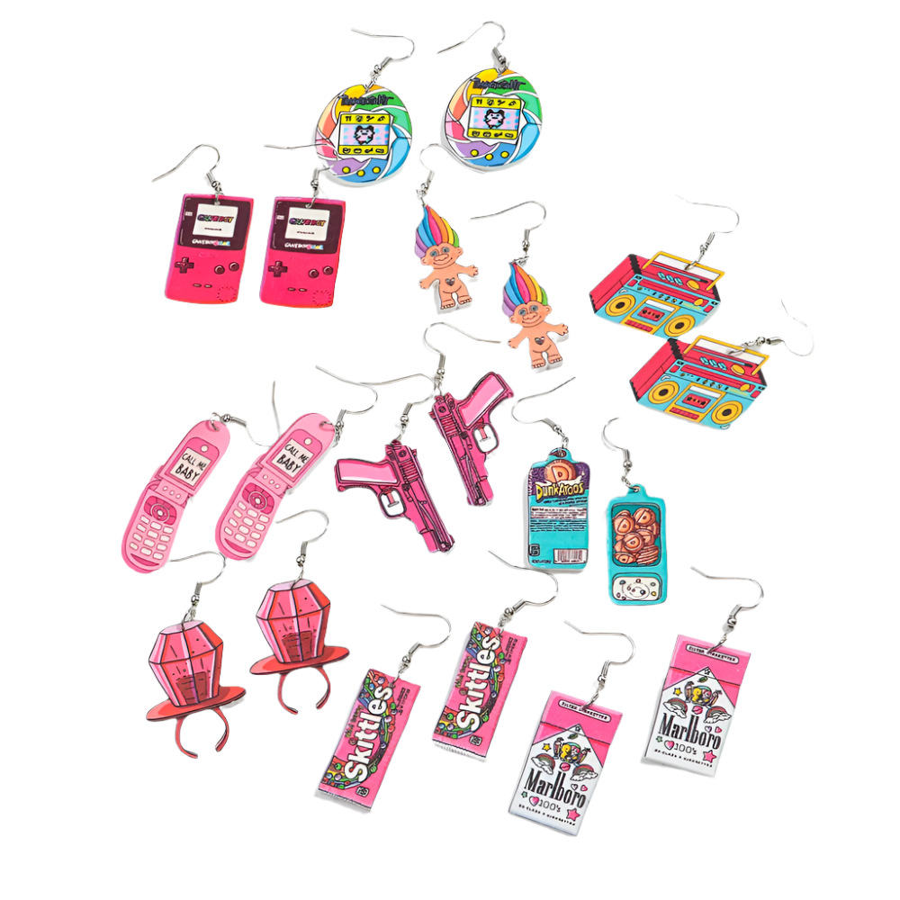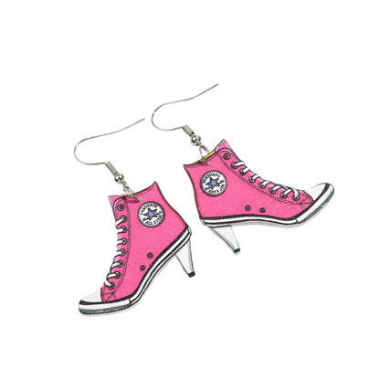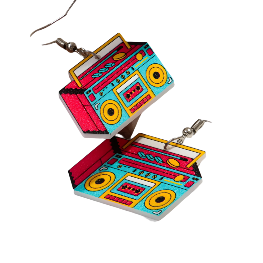 Nostalgic Y2K-inspired acrylic earrings featuring cute pink gaming motifs. Perfect for resort parties, retro theme nights & vintage fashion. Fun high heel & radio design jewelry.