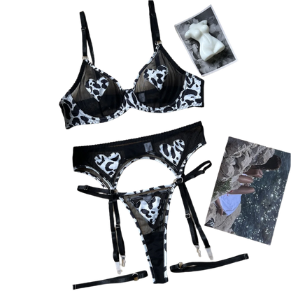 Prowl with seductive power in this sexy leopard print lingerie set featuring women's bra panty garter belt styling and hot lace teddy costume design. Perfect for igniting wild passion at intimate resort evenings and channeling your most untamed Valentine's goddess energy with leopard sophistication.