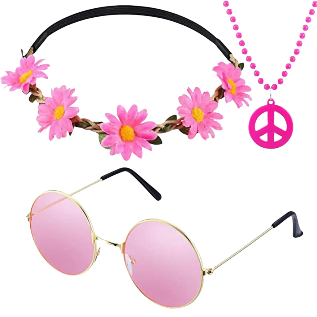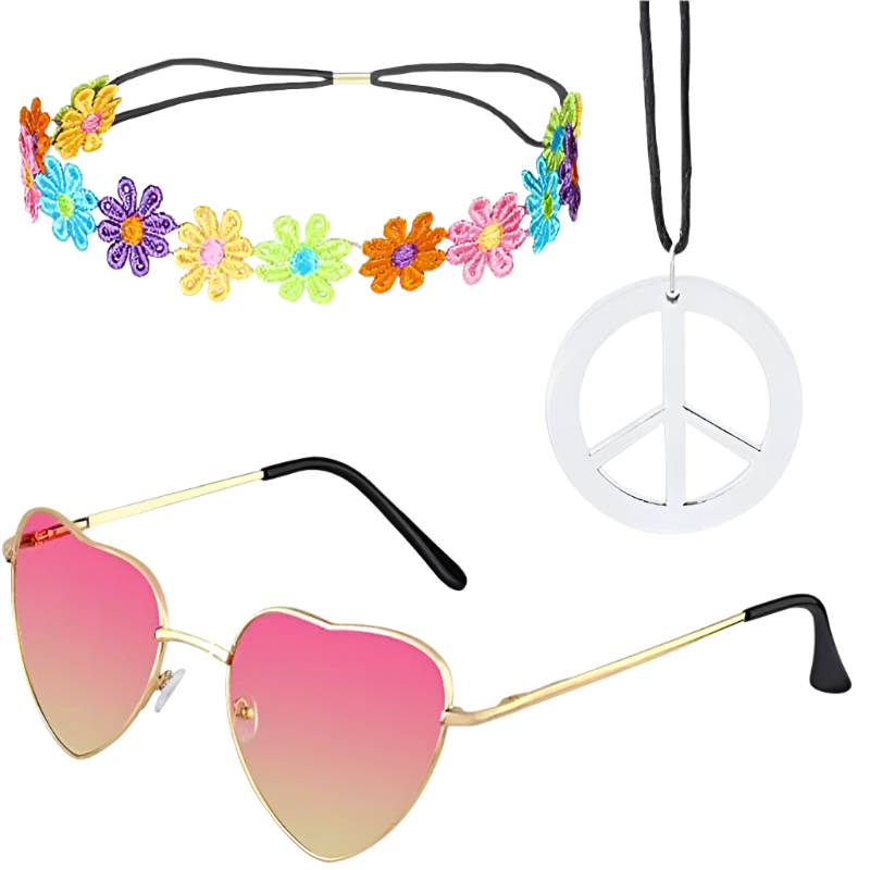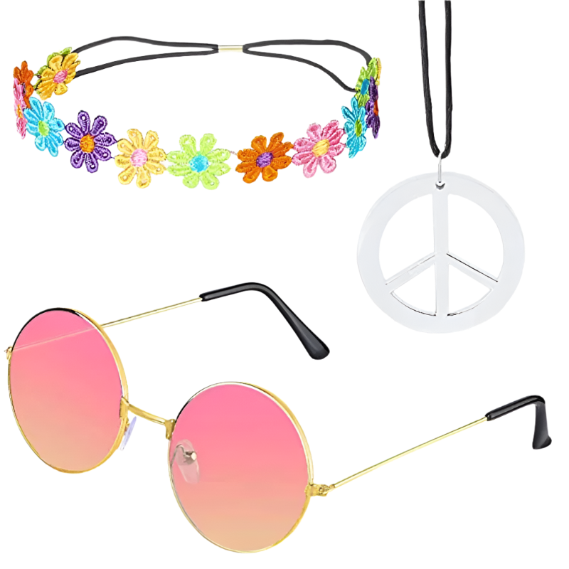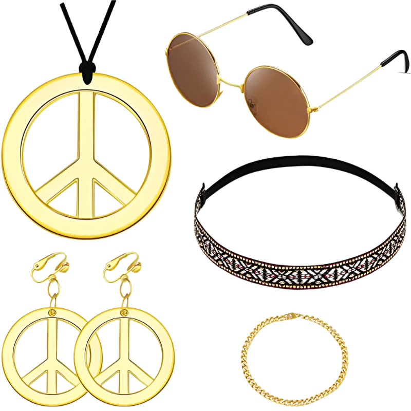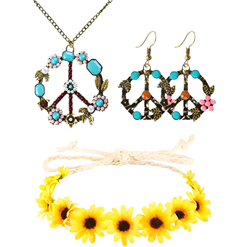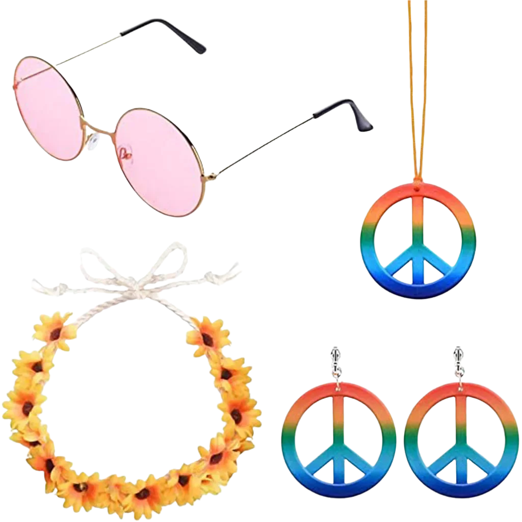 Spread love and good vibes in this rainbow peace hippie set featuring 70s retro theme night styling and groovy peace sign design. Perfect for bringing flower power energy to resort retro nights and channeling your most free-spirited hippie goddess energy with rainbow peace appeal.