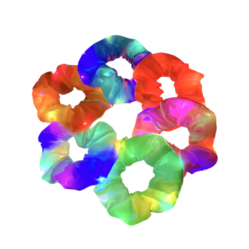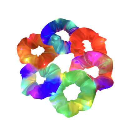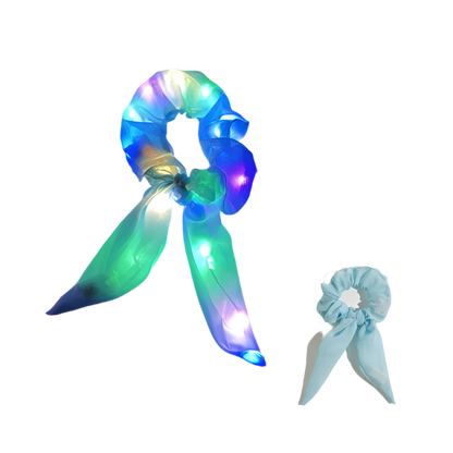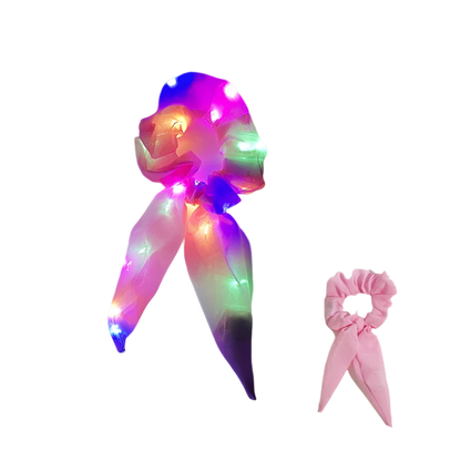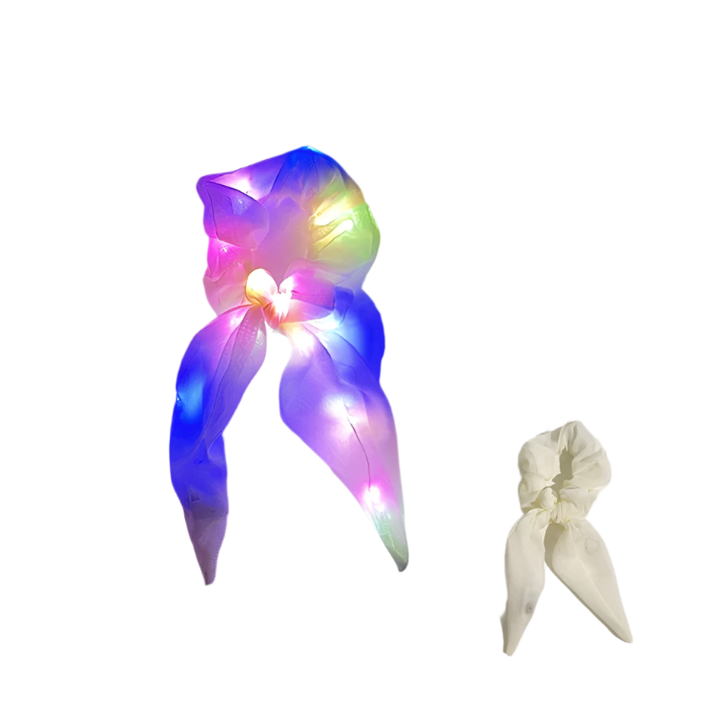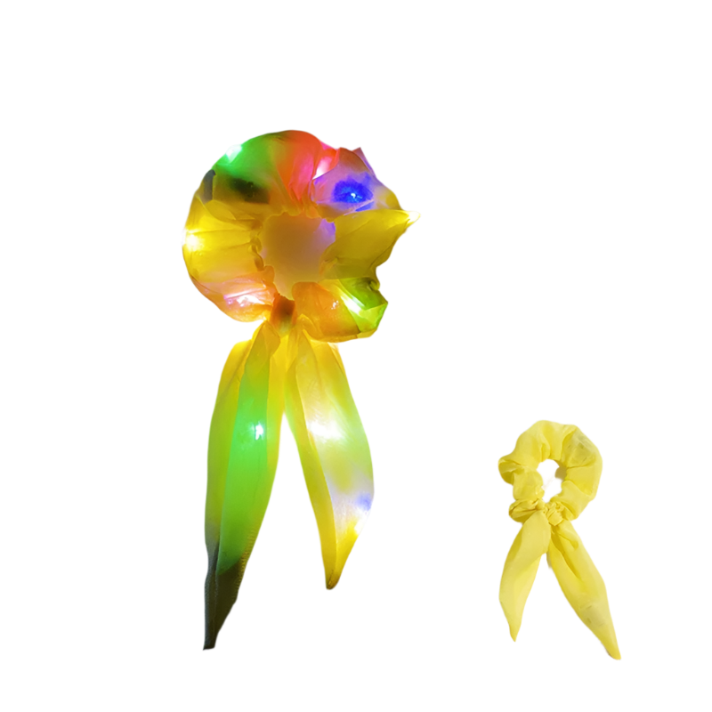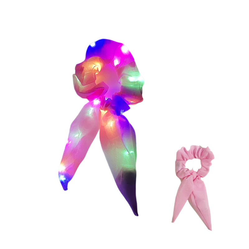 Luminous flashing hair tie with LED design. Perfect for glow parties, resort nights & summer events. Features glowing scrunchie style with fun party appeal.