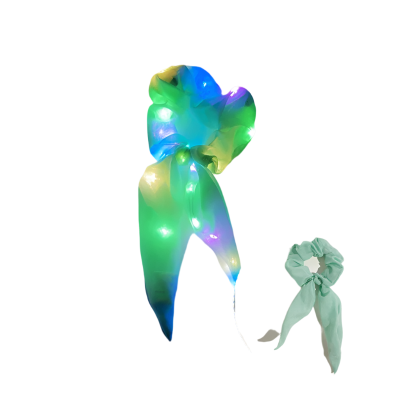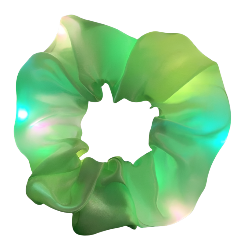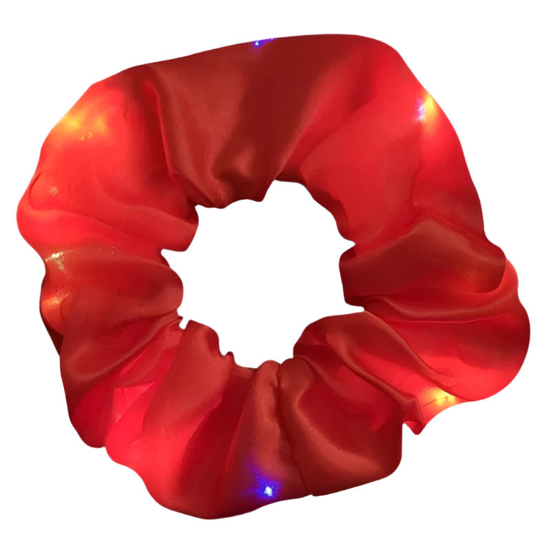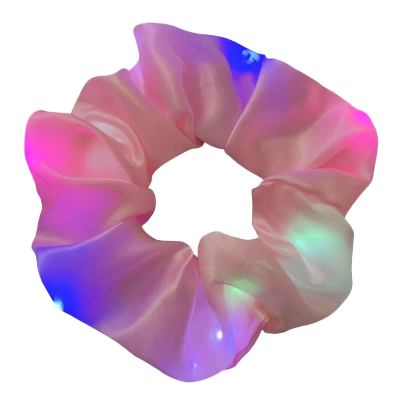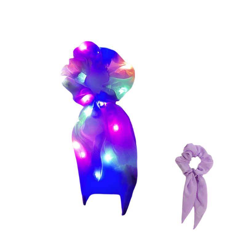 Luminous flashing hair tie with LED design. Perfect for glow parties, resort nights & summer events. Features glowing scrunchie style with fun party appeal.