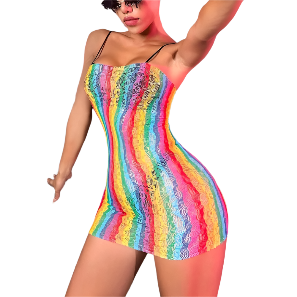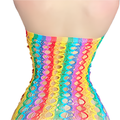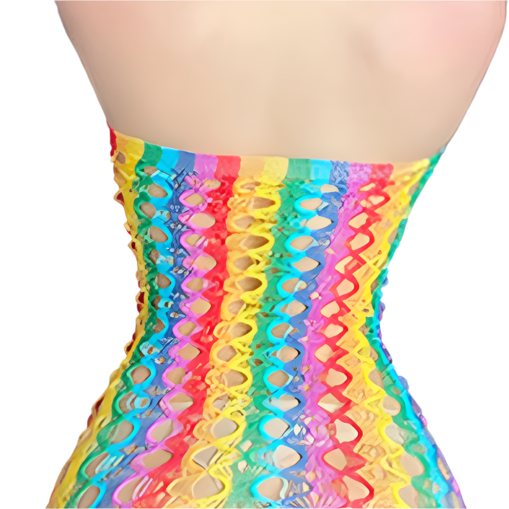 Light up the night in our sophisticated rainbow mesh backless babydoll featuring colorful fishnet bustier design and erotic lingerie styling. Perfect for rainbow-themed resort nights, colorful entertainment occasions, and vibrant intimate experiences. Combines premium rainbow mesh craftsmanship with striking fishnet details for unforgettable colorful appeal.