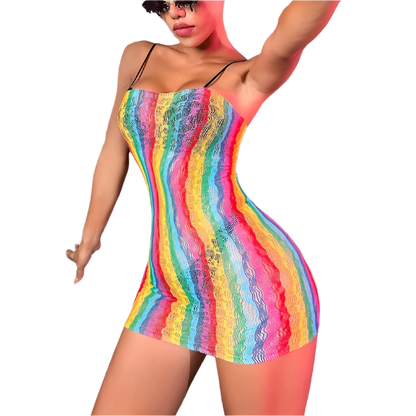Rainbow Mesh Backless Babydoll