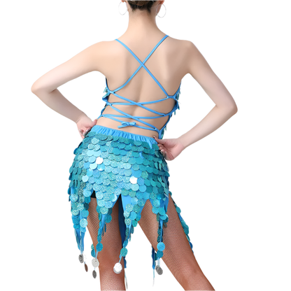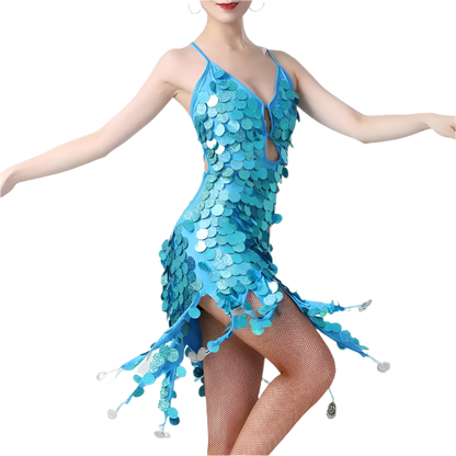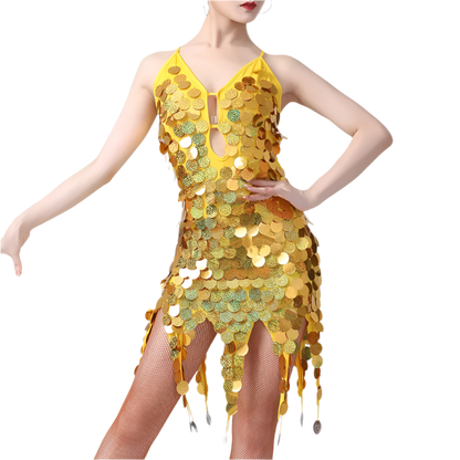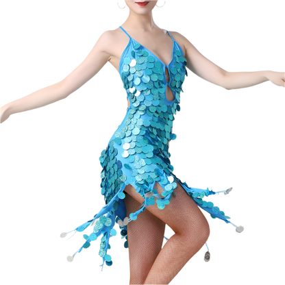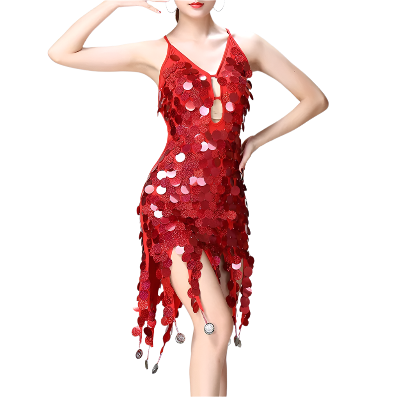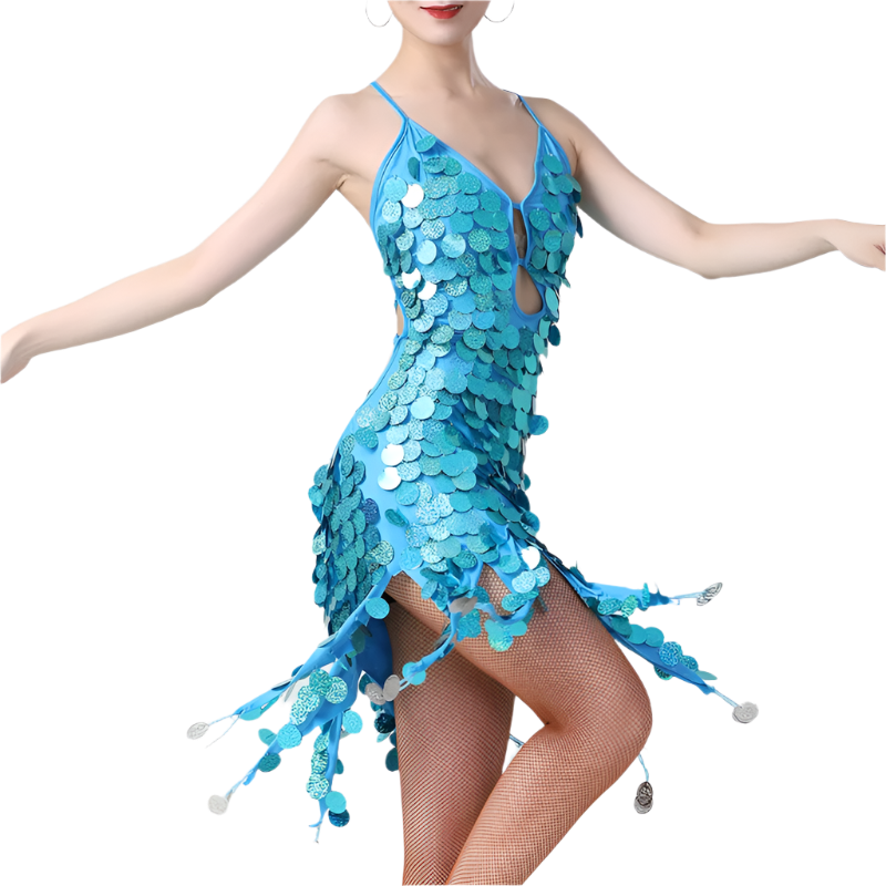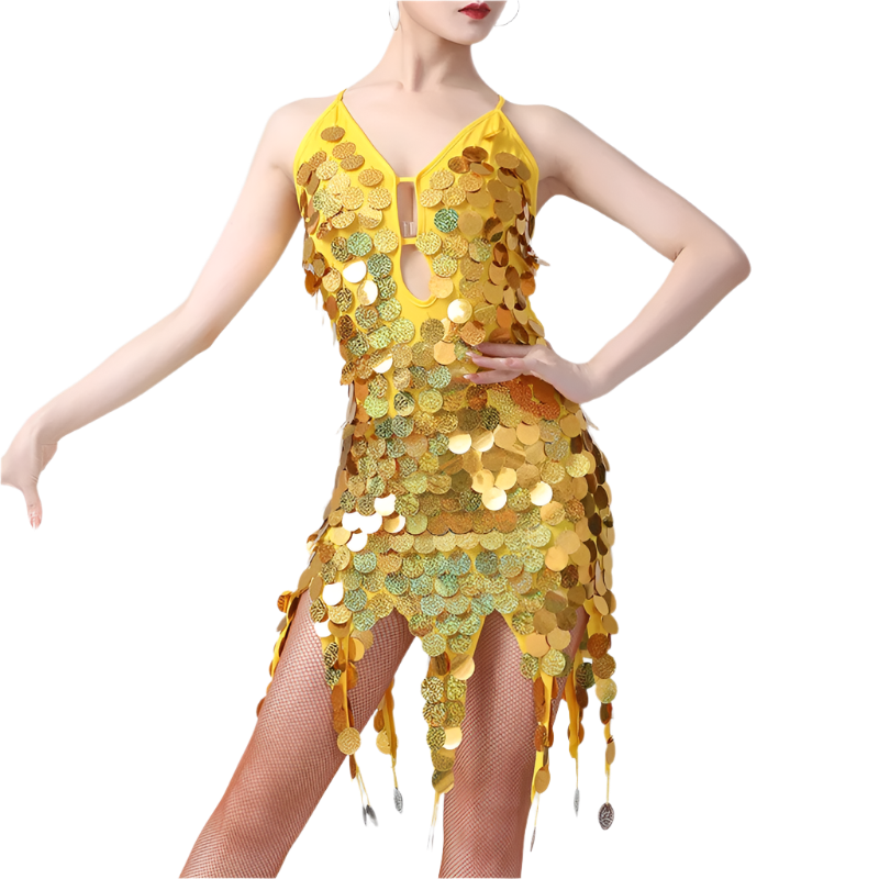 Command the stage in our sophisticated sequin tassel Latin dance dress featuring coin details and professional styling. Perfect for rumba, cha cha, tango, and samba performances at resort entertainment venues. Combines authentic dancewear with luxury resort appeal.