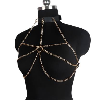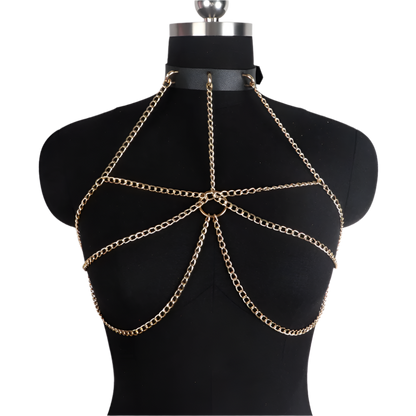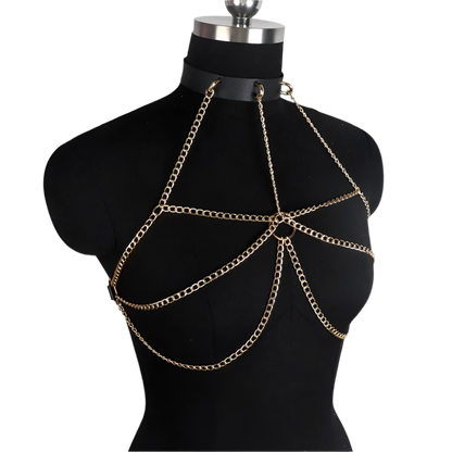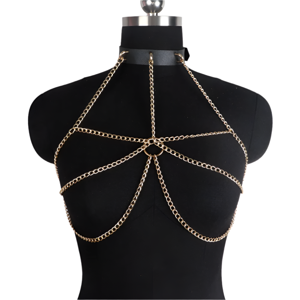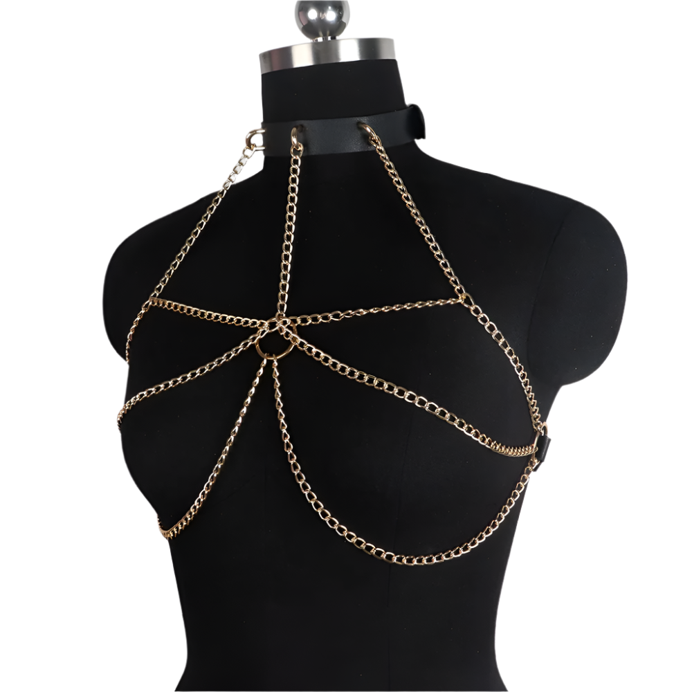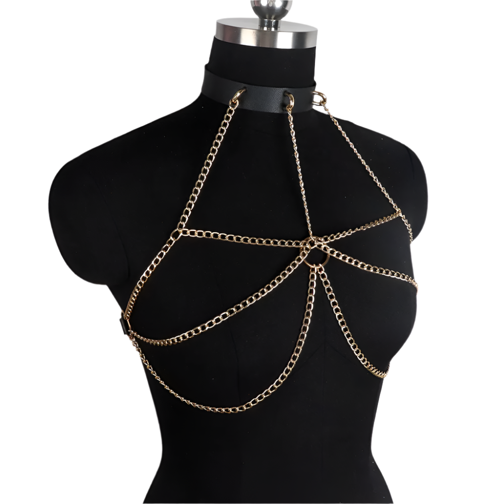 Command attention in our sophisticated leather belt metal chain chest harness featuring cage design and waist-to-suspender styling. Perfect for BDSM exploration, nightclub events, and cosplay-themed resort entertainment. Combines premium leather craftsmanship with striking metal chain details for bold intimate fashion.
