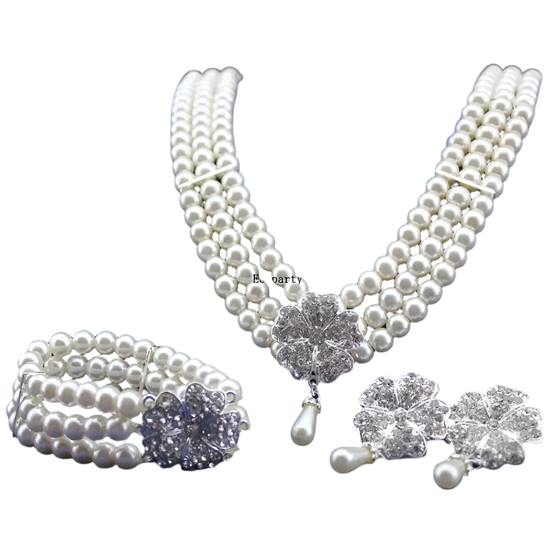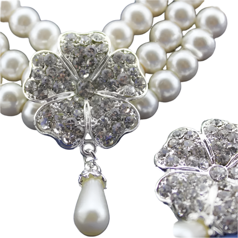 Dazzle like old Hollywood royalty in this luxury pearl & rhinestone set with Gatsby-Hollywood resort theme night styling and vintage accessories design. Perfect for bringing timeless glamour to resort vintage nights and channeling your most sophisticated starlet energy with pearl rhinestone elegance.